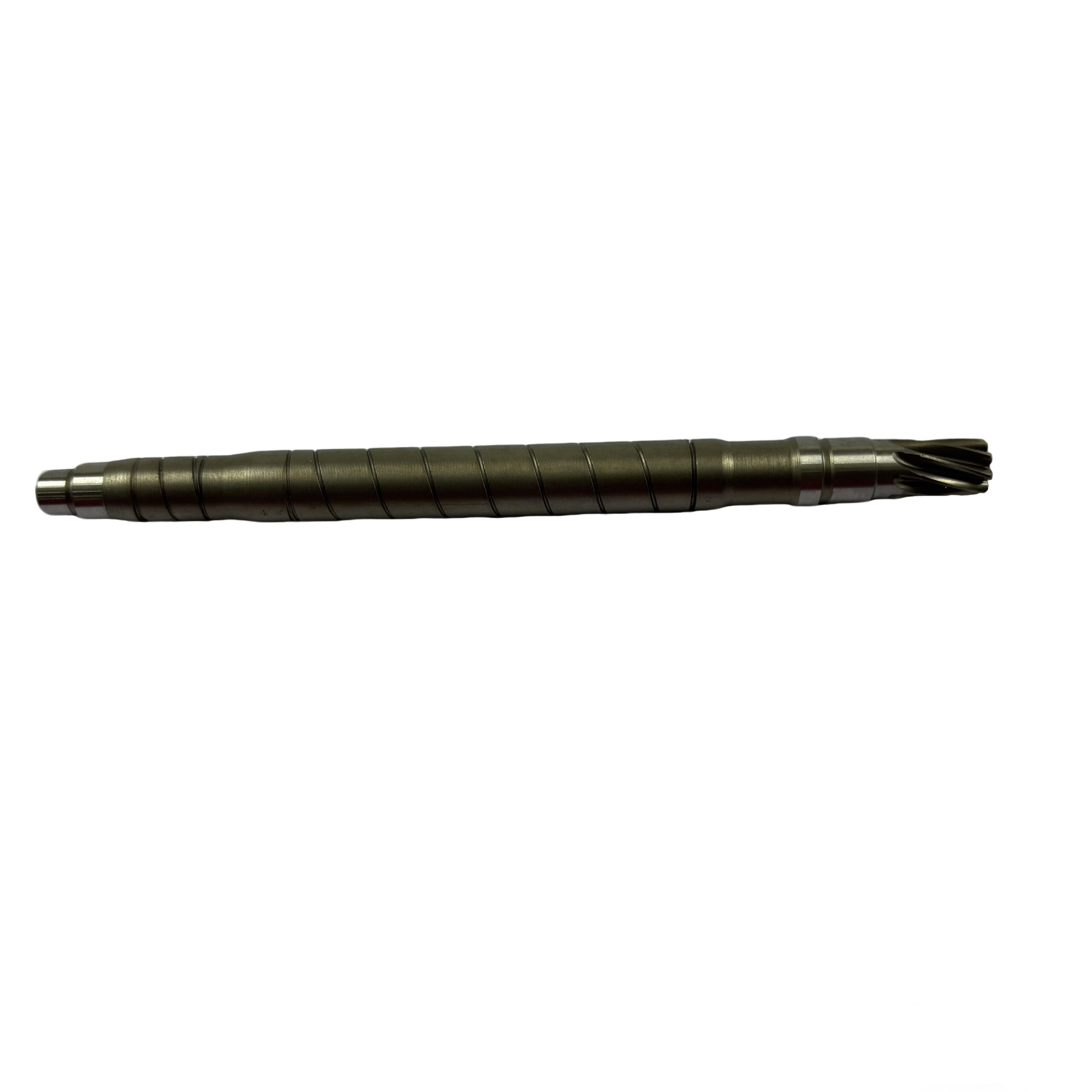 2020692 gear shaft (helical gear) is made of 20CrMo, with a pressure angle of 20°, module of 0.8, 8 teeth and 15° right-hand helix angle. It has a tooth outer diameter of 10.8mm, total length of 142.3mm and weight of 0.0870kg. Produced via precision processes including hobbing, heat treatment correction and multiple grinding, it is a dedicated transmission component for power tools.