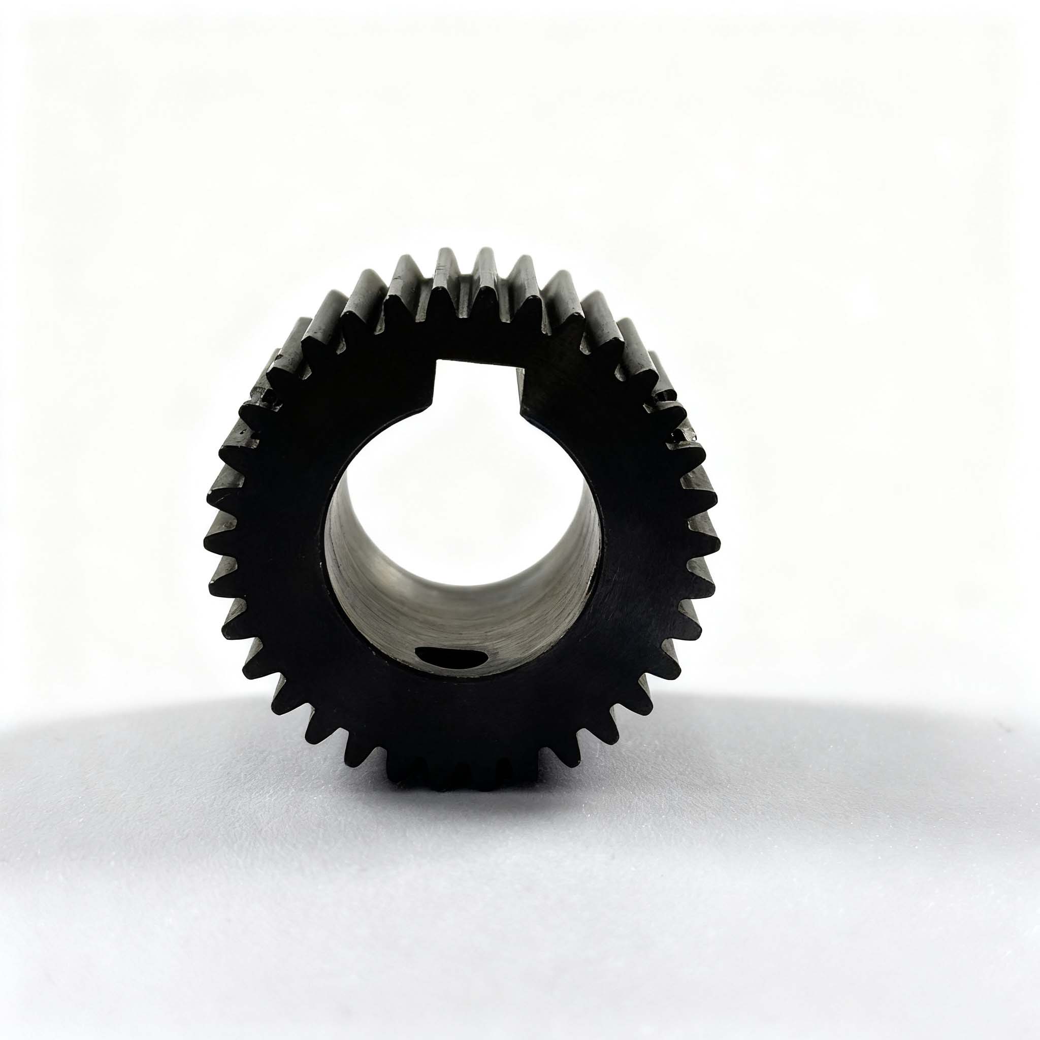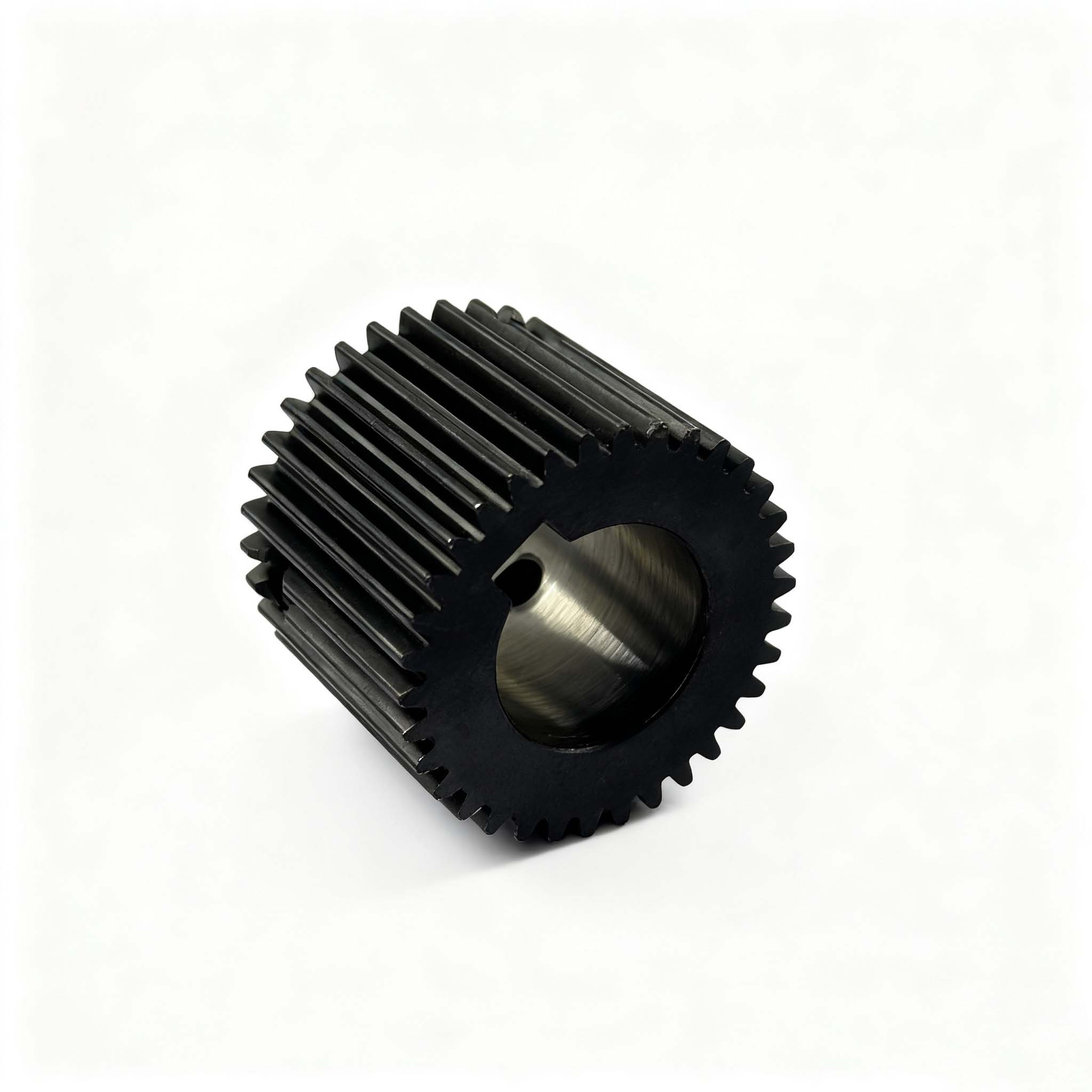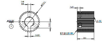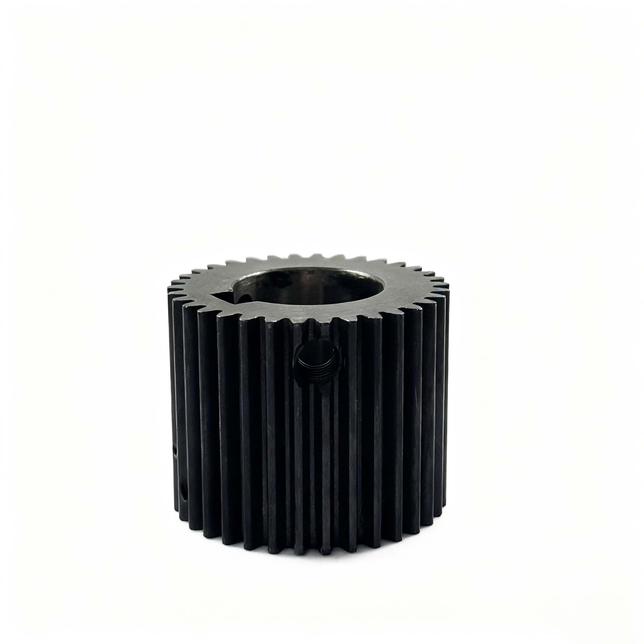 The X pinion with product number 220825005 belongs to the spur gear category, and its core transmission parameters are accurately adapted to the needs of sewing equipment. This gear has a pressure angle of 20°, a module of 1, 34 teeth, a helix angle of 0°, and adopts a non-offset design, featuring excellent transmission stability. In terms of structural dimensions, its inner diameter specification is 19/15, the outer diameter of the tooth part is 36mm, and the total length is 29mm; the material is 20CrMo alloy structural steel, which has good strength and wear resistance. The production process adopts a combination of multiple precision processes, including sawing, turning, threaded hole processing, reaming, hobbing, heat treatment, shot peening, blackening, and secondary reaming in sequence, ensuring the tooth precision and overall assembly performance. As a key transmission component of sewing gears, this pinion provides reliable power transmission for the transmission system of sewing equipment through precise tooth design and stable structural characteristics, guaranteeing the stability and efficiency of equipment operation.