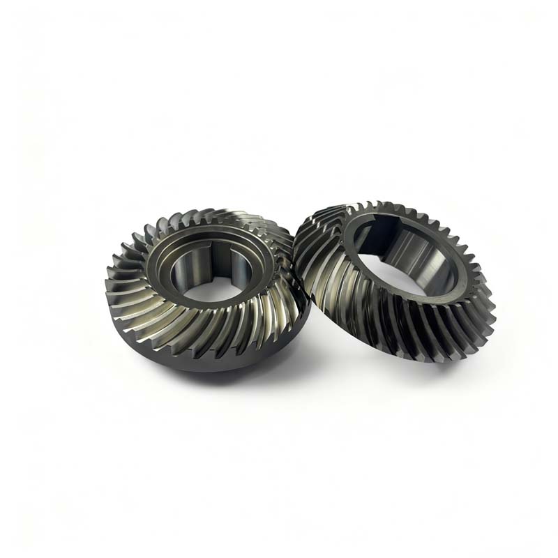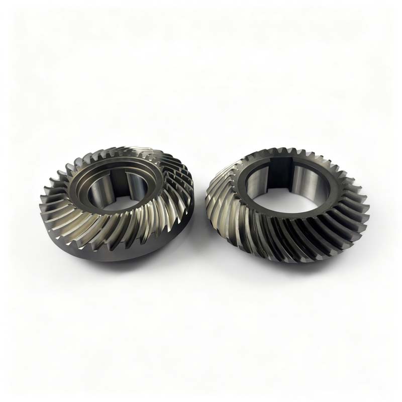 This series is a set of spiral bevel gears for reducers, including input and output gears, both made of 20CrMnTi with a pressure angle of 20°, module of 2.4, 34 teeth, and speed ratio of 1, spiral angle of 35°. Manufactured through precise processes including sawing, turning, keyway machining, gear milling, heat treatment, shot blasting, boring + end facing + guide arc chamfering, and gear grinding, they feature high transmission accuracy and wear resistance, specially designed for reducer transmission systems.