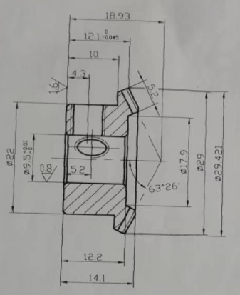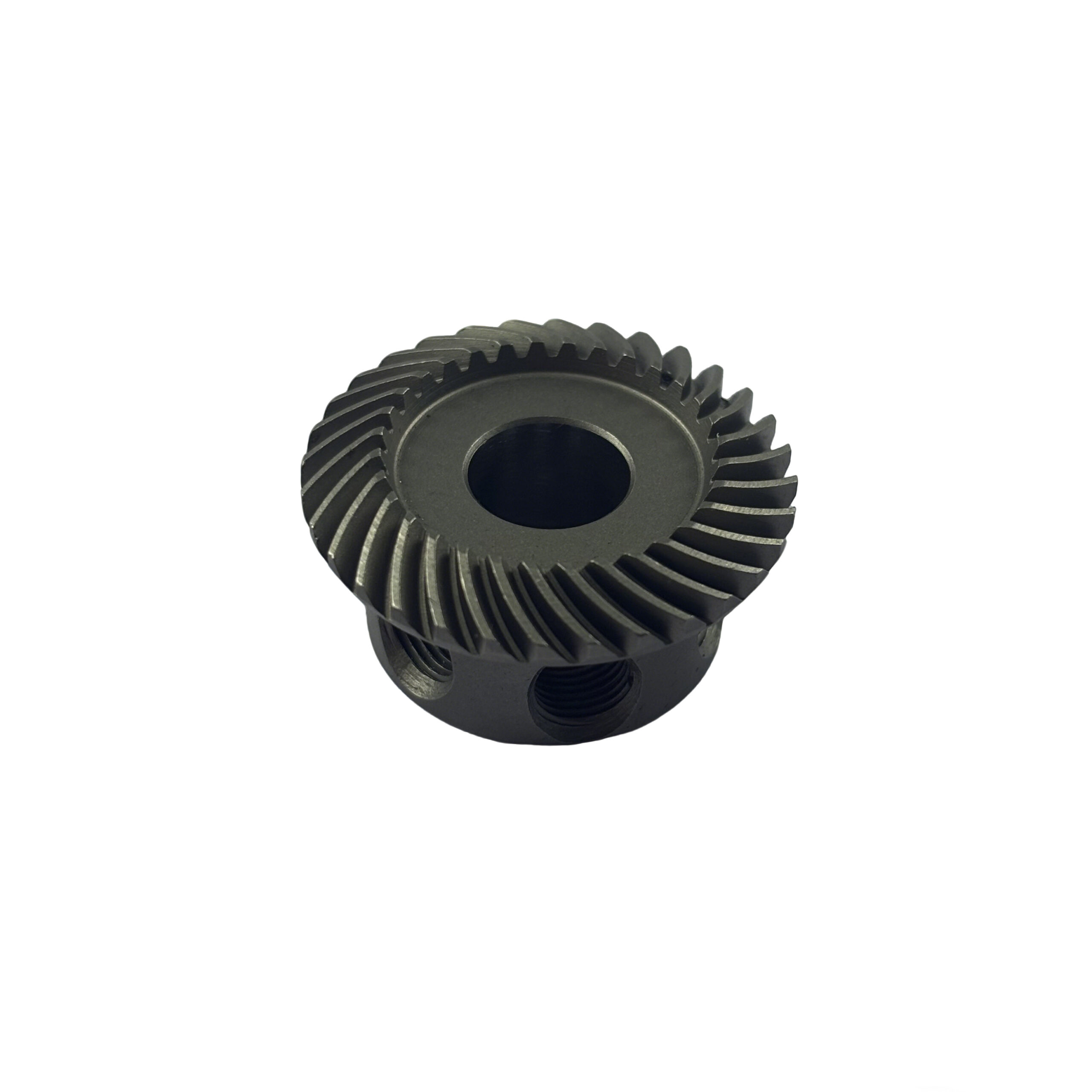 BZ-009-C corresponds to model 50WF1-040, which is a lower shaft (341 gear wheel) and forms an exclusive supporting combination with BZ-008-C. It has the same material and its core parameters achieve precise adaptation: the pressure angle is also 20°, module 0.7, number of teeth 32 (twice that of BZ-008-C), helix angle 36.393° (left-hand rotation, marked as 36.393°/L); in terms of dimensions, inner diameter 9.5mm, tooth outer diameter 29.421mm, total length 14.1mm, net weight 0.0303kg. Its manufacturing process adopts a targeted optimized design, sequentially going through six core processes: normalizing, turning, gear hobbing, heat treatment, shot blasting and reaming. Gear hobbing ensures tooth profile accuracy and transmission adaptability, and reaming guarantees the assembly accuracy of shaft components. It also undergoes strict process control and quality inspection. Together with BZ-008-C, through the structural cooperation of left-hand and right-hand rotation and the precise ratio of tooth number and speed ratio, it jointly realizes stable power transmission of the 341 model sewing equipment.