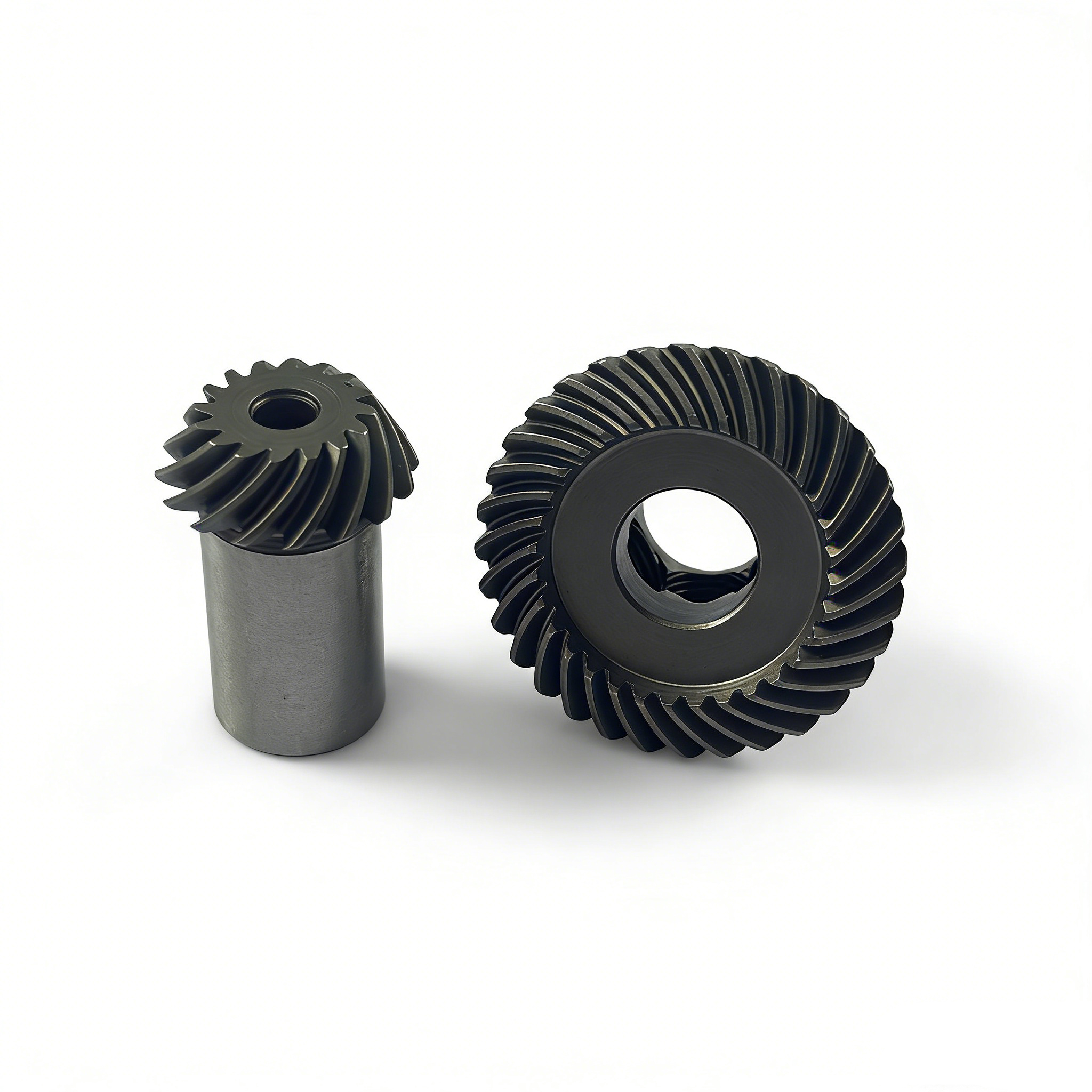 BZ-008-C (50WF1-043 Hook Gear/341 Pinion) and BZ-009-C (50WF1-040 Lower Shaft/341 Gear Wheel) are exclusive supporting spiral bevel gears for 341 model sewing equipment. Both are made of 20CrMo and processed through multiple precision processes. Core parameters: pressure angle 20°, module 0.7, helix angle 36.393° (right-hand/left-hand rotation respectively); BZ-008-C: 16 teeth, speed ratio 2, inner diameter 7.94mm, addendum diameter 12mm, weight 0.0617kg; BZ-009-C: 32 teeth, inner diameter 9.5mm, addendum diameter 29.421mm, weight 0.0303kg. Used in supporting pairs, they feature precise and stable transmission, suitable for the transmission needs of sewing equipment.