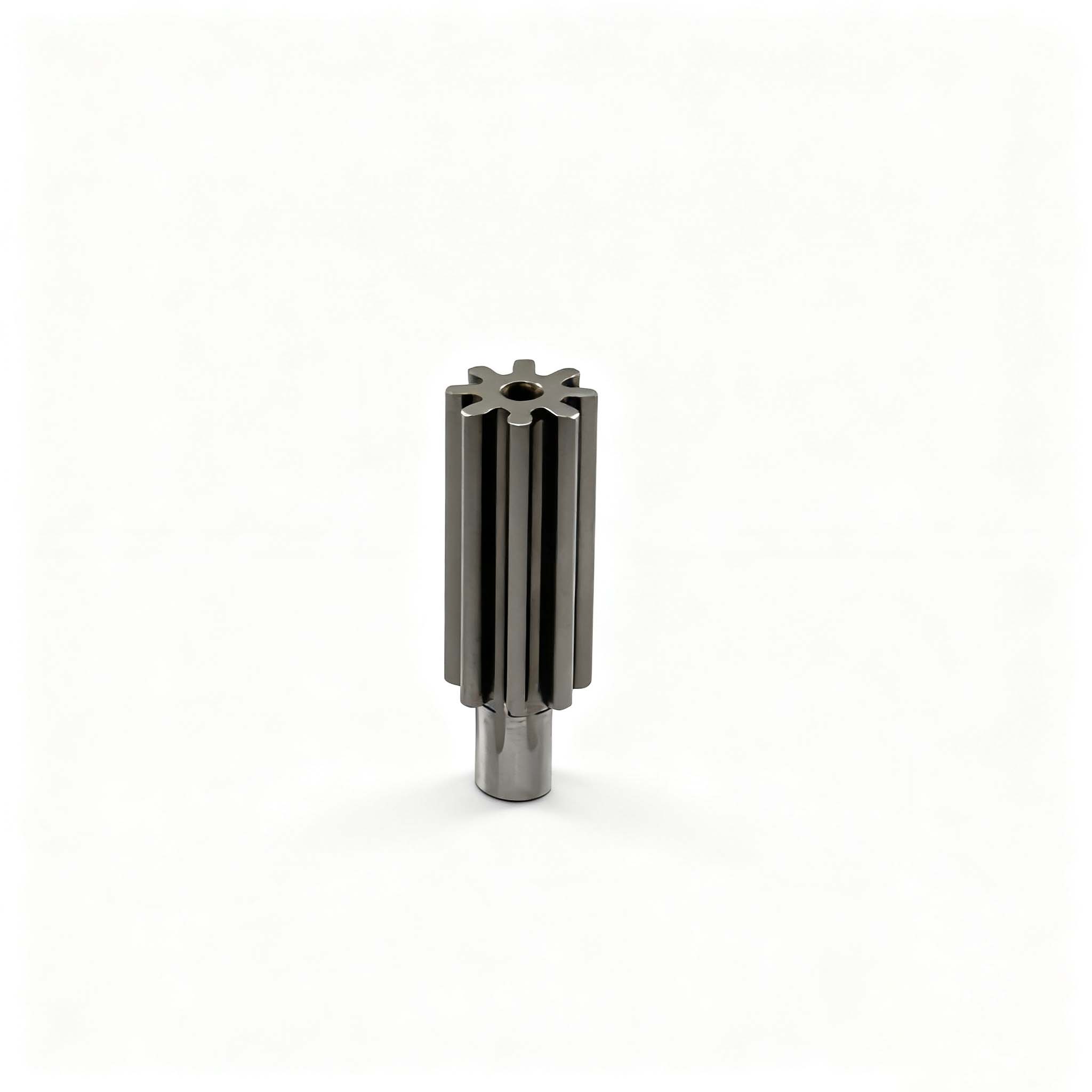 The 4825 Brushless Motor 18V Finished Product is a spur gear with module 1, 7 teeth and 0° helix angle. Its shaft diameter is 8mm, tooth outer diameter 9.6mm and total length 91.4mm. Manufactured through precision processes like normalizing, hobbing and heat treatment, it is a high-performance transmission component for power tools.