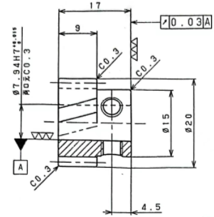 - 1560-4 Mini Hook (Cylindrical Gear 28×1.25-RH) is a helical gear made of 20CrMo. With a pressure angle of 20°, module of 1.25, 28 teeth, 15° right-hand helix angle, tooth outer diameter of 38.73mm and weight of 0.0747kg, it is produced via precision processes and serves as a key transmission component for sewing equipment.