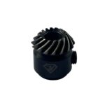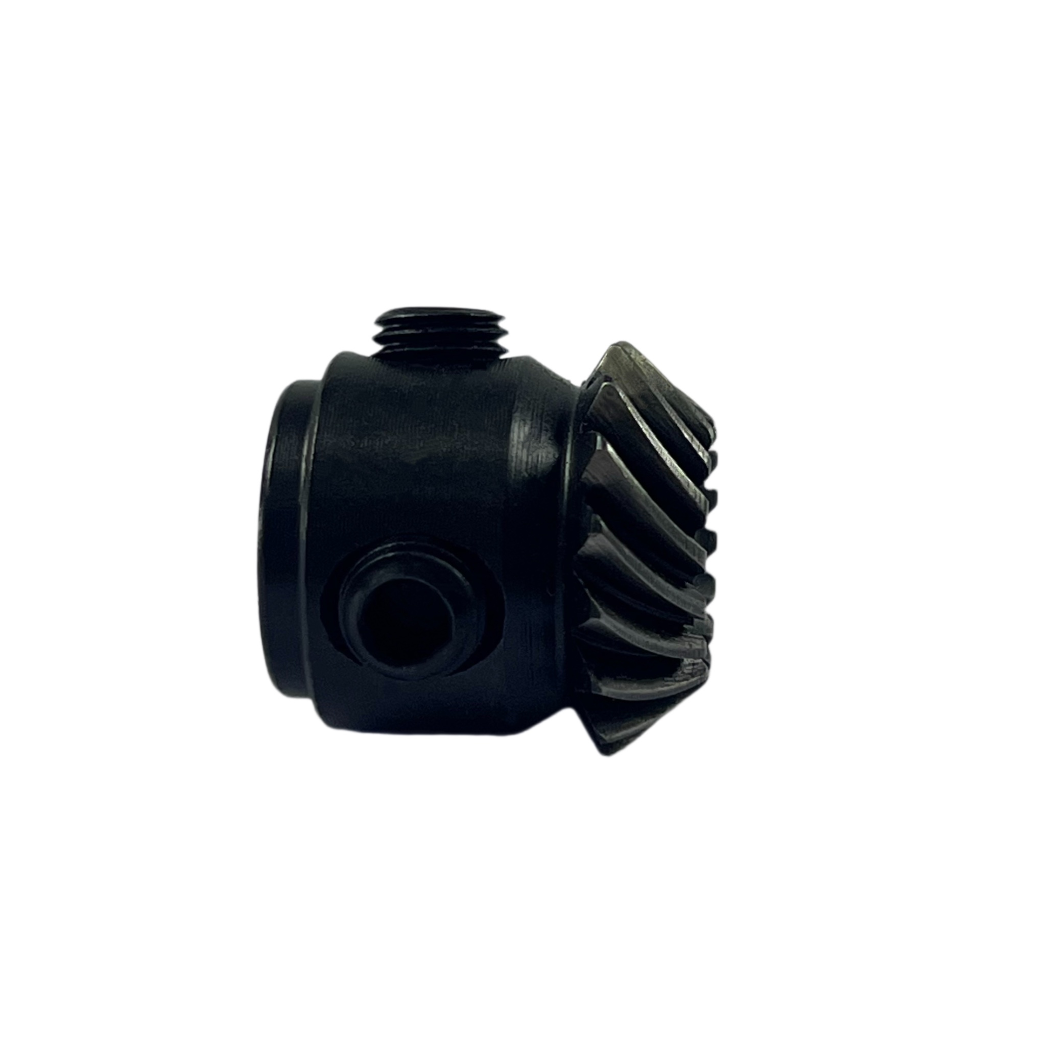 Model Countershaft Pinion T16 is classified as a spiral bevel gear, serving as a dedicated component for the transmission system of sewing machinery. This gear features a pressure angle of 25°, a module of 1, 16 teeth, a gear ratio of 1, and a spiral angle of 35° right-hand (35°/R). In terms of structural dimensions, it has an inner diameter of 7mm, an outer tooth diameter of 17.5mm, an overall length of 18mm, with a unit weight of 0.0165kg. Made of 20CrMo alloy steel, it undergoes a sophisticated manufacturing process including sawing → turning → threaded hole machining → reaming → gear milling → heat treatment → shot blasting → blackening → reaming → screw assembly. Full-process quality control ensures the gear’s dimensional accuracy and assembly compatibility, meeting the low-noise and high-stability operation requirements of the transmission system of sewing machinery.