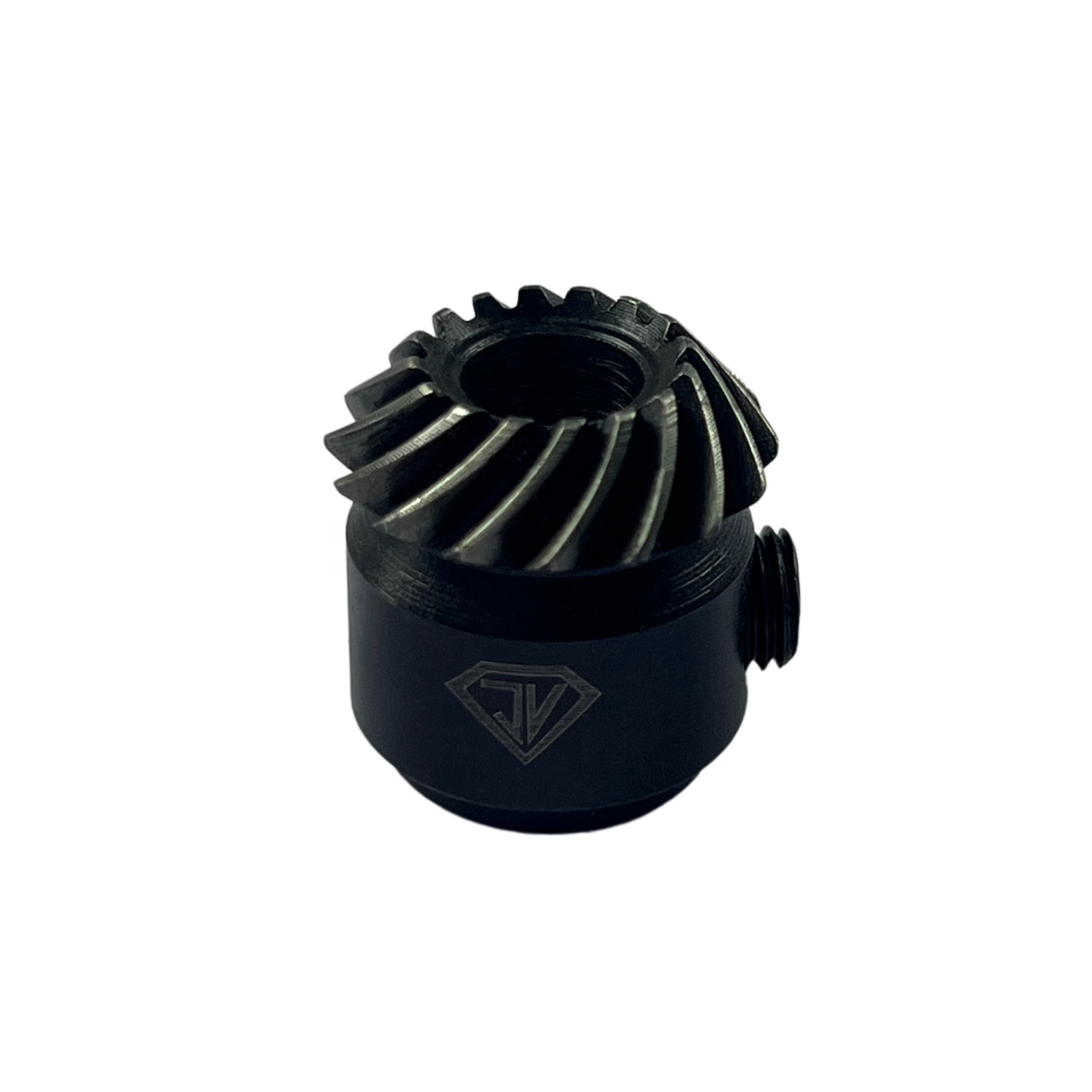 CJBB002F-1 (5-hole outer diameter non-turned) finished spiral bevel gear features a pressure angle of 20°, module of 1.2118, spiral angle of 35°/L, inner diameter of 5mm, tooth outer diameter of 11.6mm and total length of 19.5mm. It is a dedicated core transmission component for reducers with simplified processes and stable transmission performance.