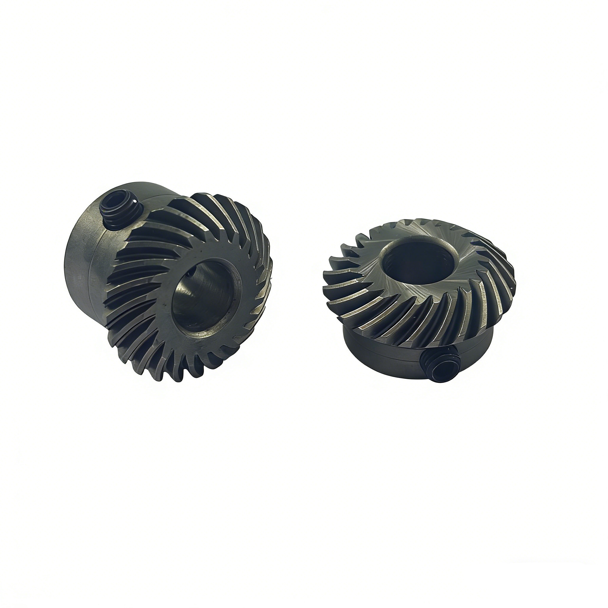 The NBRX-1530 series of spiral bevel gears (including the short type φ8 and the long type T24) are made of 20CrMo material and manufactured through multiple precision processes. With parameters of 20° pressure angle, 0.9 module and 24 teeth, their helix angles are 35° left-hand rotation and 35° right-hand rotation respectively, and the tooth outer diameter is 21.8mm. The short type has a total length of 10.5mm and a weight of 0.0148kg, while the long type has a total length of 16mm and a weight of 0.0235kg. Specifically designed for sewing equipment, these gears feature stable transmission, wear resistance and durability.