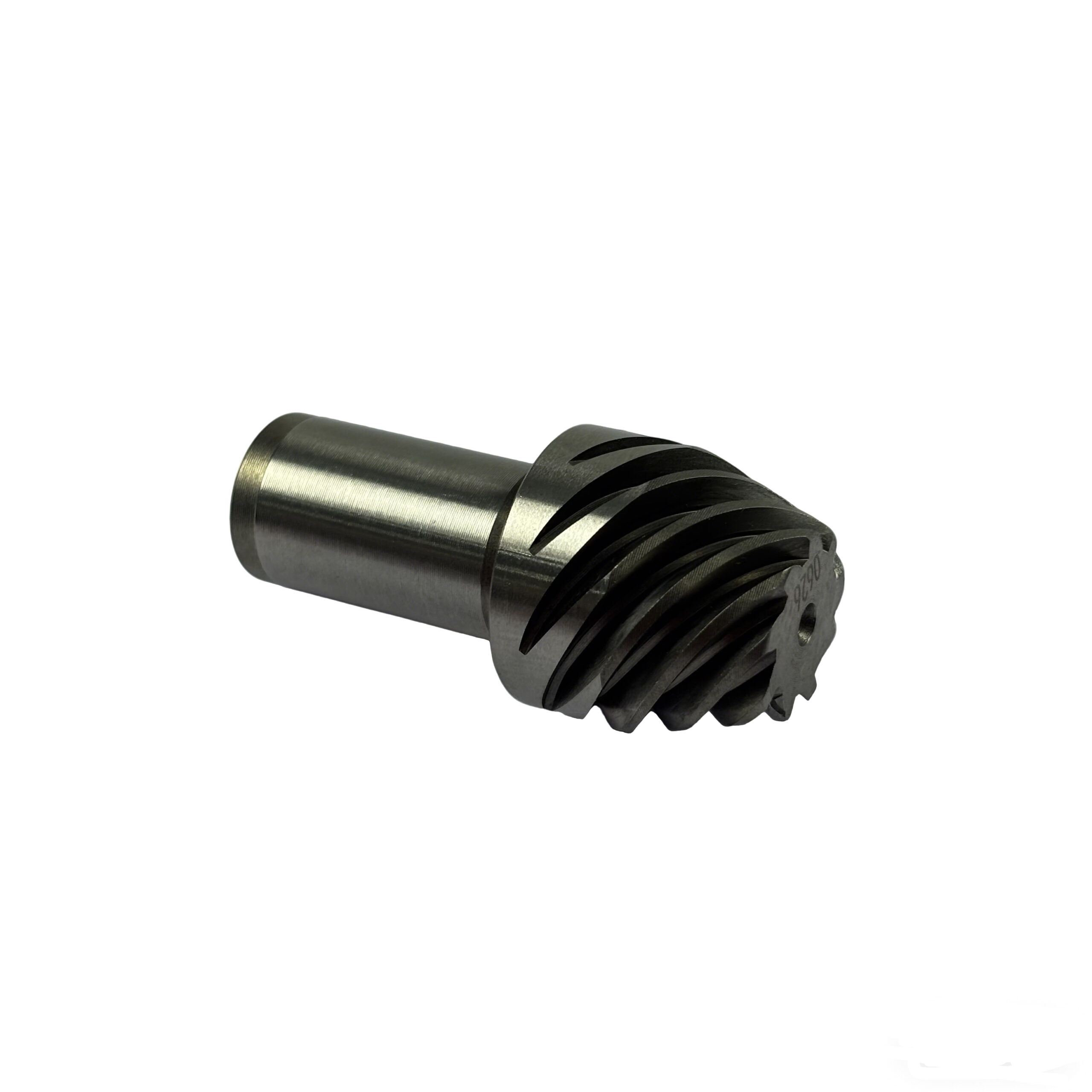 XG-024-C Hypoid Gear Shaft, 20CrMnTi, module 1.48, 9T, 50°L, shaft Ø14mm, L=46.22mm, precision lapped for reducers.