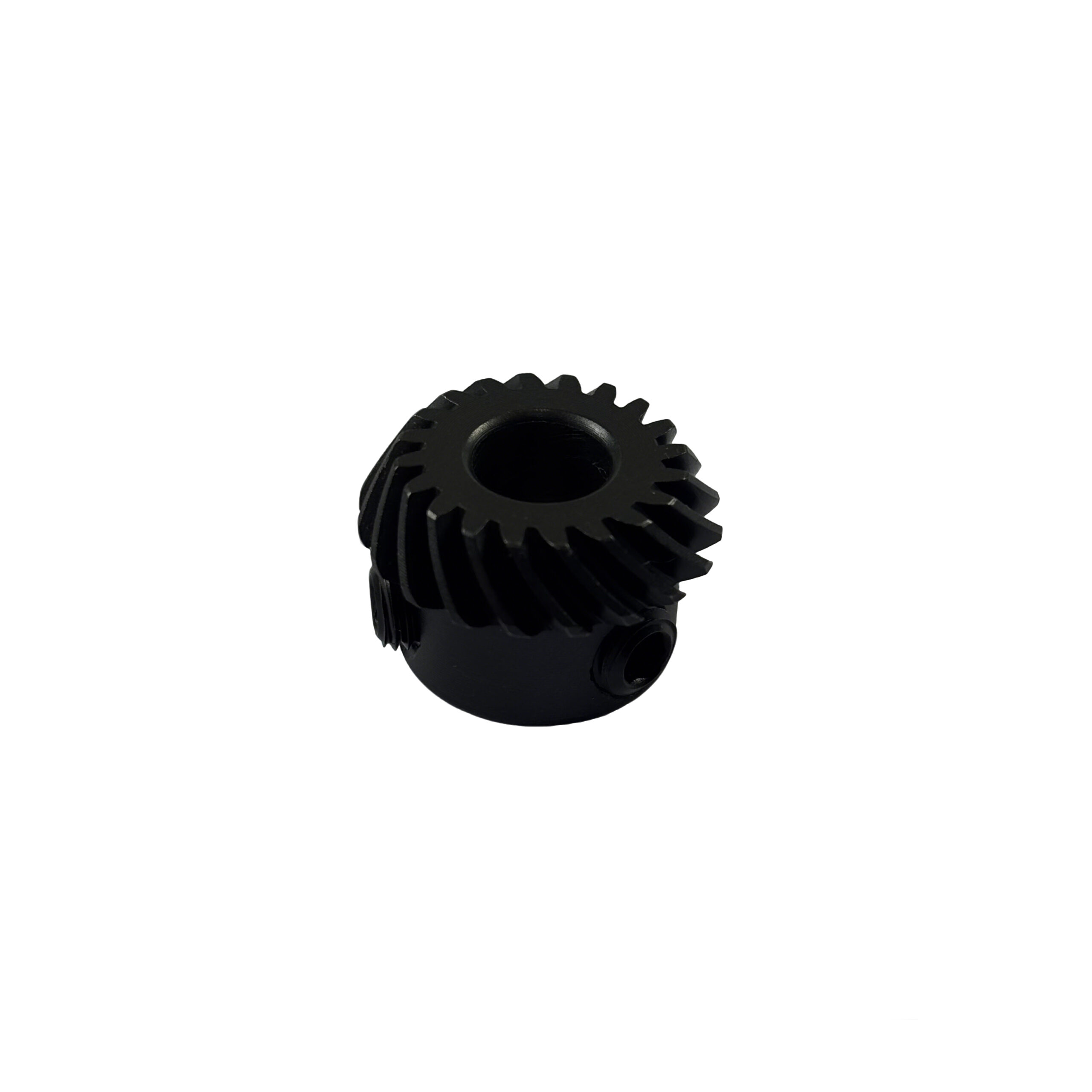 - T20 Spiral Bevel Gear: Pressure angle 20°, module 1, number of teeth 20, speed ratio 1, spiral angle 35°/L, inner diameter 8mm, outer diameter of tooth part 21.5mm, total length 14.1mm. Made of 20CrMo material, it undergoes a complete manufacturing process including normalizing, turning, threaded hole machining, reaming, gear milling, heat treatment, shot blasting, blackening, secondary reaming, marking, and screw assembly, ensuring the structural strength and transmission accuracy of the gear.